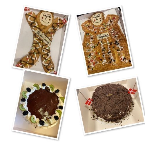Vi har et stort udvalg af lagkager og kagemænd/kone, som I kan bestille her på vores webshop.